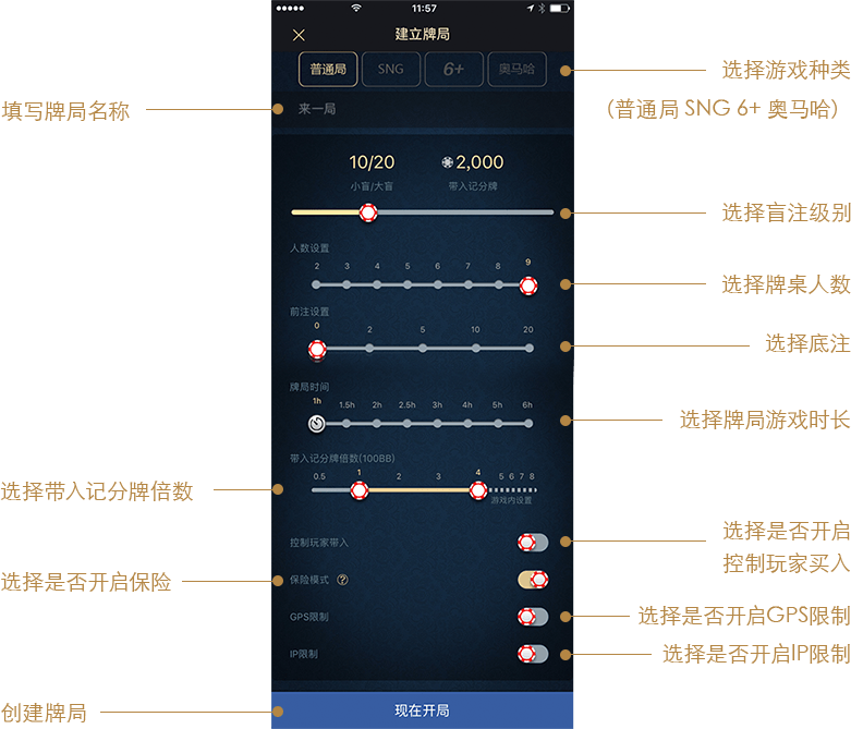 房主功能 建立牌局