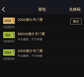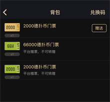 门票在个人背包中,用户可以通过门票或者德扑币报名参加比赛。部分门票配有有效期,在有效期后门票会自动消失。