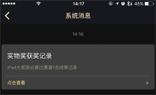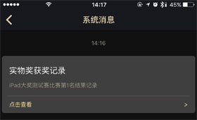 当玩家在实物奖的比赛中获得了实物奖励,在系统消息处不仅会发送给玩家比赛结果,还会发送让玩家填写个人信息的获奖通知,玩家在获奖信息中填写个人资料,即可获得比赛赢得的实物奖品。