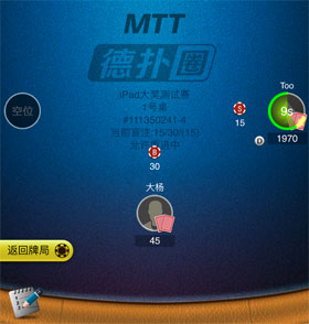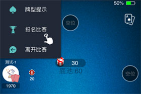 当玩家在旁观比赛时,产生参与比赛的动机,在MTT左上角菜单栏中有报名比赛按钮,旁观玩家可以通过点击该按钮完成报名。